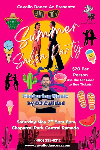 Daniele Cavallo and Leela Fazzuoli are Cavallo Dance Az! We each have over 20 years of experience in the dance world, and love sharing that with our students and audiences. We specialize in the Latin dances and compete and perform those together and with our students. Join us in sharing the passion and rewards of Latin Dance! We specialize in Salsa and Bachata, and the 5 Competitive Latin American Dances; Cha Cha, Samba, Rumba, Paso Doble, and Jive.
